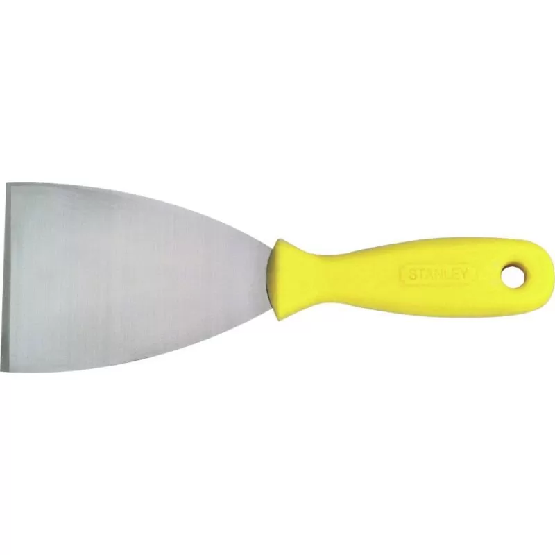 Su hoja metálica flexible permite una distribución uniforme de masillas y selladores, mientras que su mango plástico ergonómico ofrece mayor comodidad y control durante el uso.