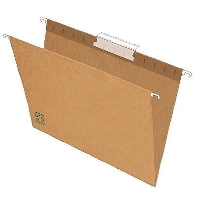 Folder colgante tamaño oficio color café con vástago metálico. Ideal para archivar y organizar documentos en archivadores o gavetas.