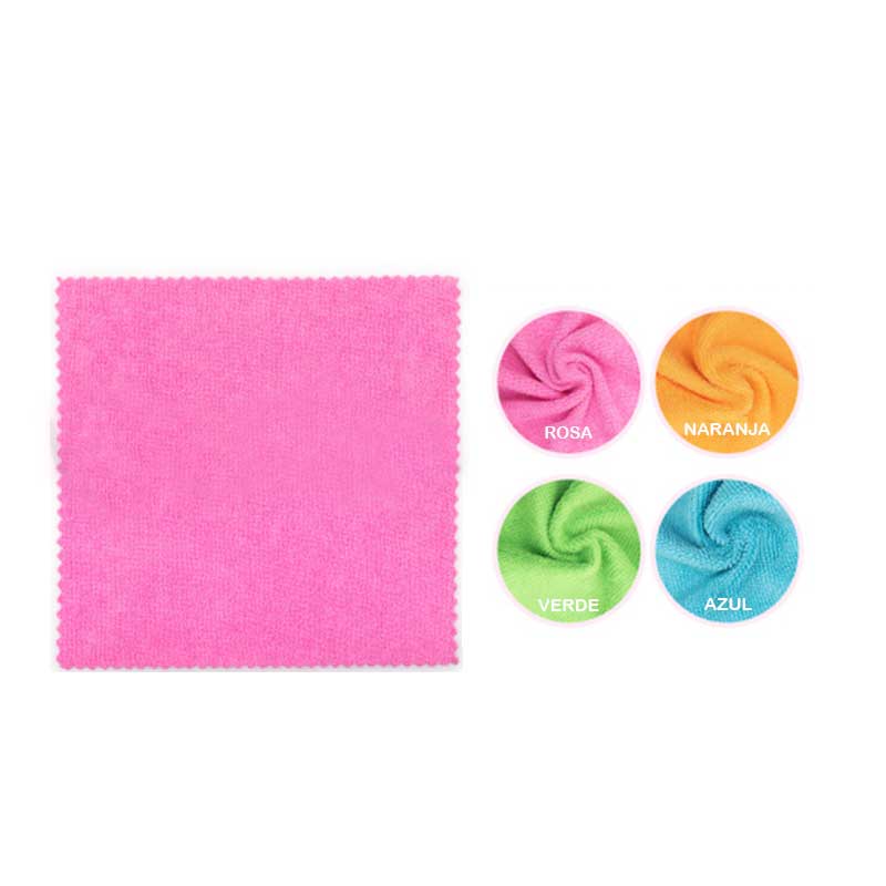 Paño de microfibra multicolor, ideal para limpieza de todo tipo de superficies sin rayar. Alta absorción y secado rápido.